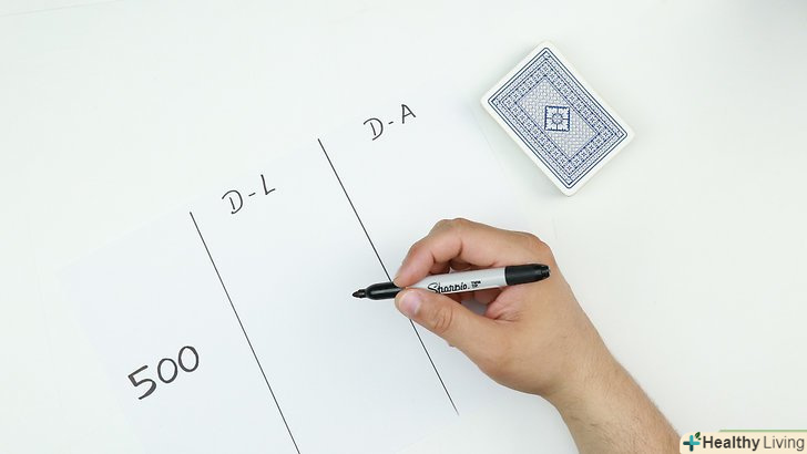 Домовтеся, скільки очок потрібно набрати, щоб виграти. для початку вирішите, яка кількість очок визначить переможця і кінець гри. Зазвичай це число 500 або інше кратне 100. Гравці можуть встановити планку вище або нижче 500 в залежності від того, як довго вони хочуть розігрувати партію. [1]- Приберіть вальти з колоди і порівну роздайте карти. в «піки» потрібно грати звичайної колодою карт без джокерів. Решта 52 карти роздайте порівну між гравцями. У кожного гравця має бути 13 карт. [2]