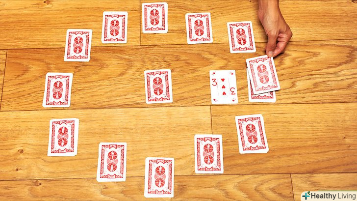 Почніть грати, відкривши одну карту з Середньої стопки. поставте її поруч зі стопкою, яка знаходиться в тому місці кола, де повинен бути відповідний карті номер. Наприклад, якщо ви відкрили двійку, покладіть її туди, де на годиннику знаходиться цифра 2. Валети-це 11 годин, королеви - 12 годин, а королі кладуться в середину.