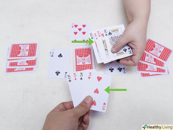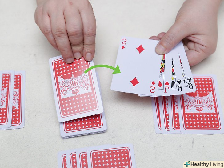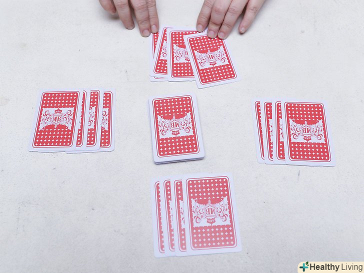 Роздайте по чотири карти кожному гравцеві. залишилися карти в колоді покладіть в центр столу, щоб всі гравці мали до них доступ.
