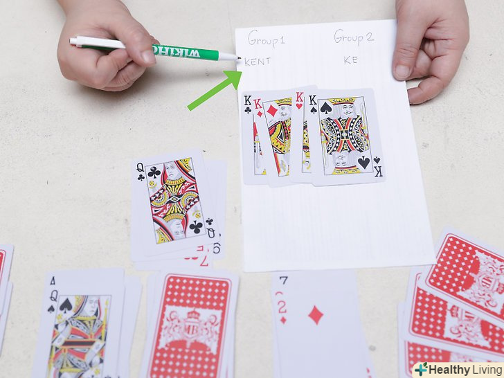 Грають по колу, поки хто-небудь не крикне «Кент». якщо команда зібрала чотири карти одного достоїнства, вона виграє раунд і заробляє букву «К».- Якщо вам здається, що інша команда збирається крикнути «Кент", швидко скажіть " Стоп!"або " КонтрКент", тоді виграш перейде до вас.