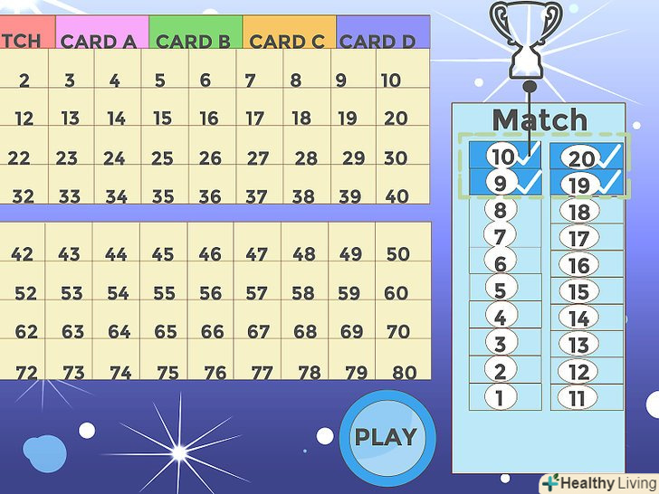 Слідкуйте за тим, як кено-машина випадково вибере 20 куль (стежити можна і на екрані). у більшості сучасних кено-машин для генерації виграшних чисел використовується програмне забезпечення. Потім числа показуються на спеціальних табло. Якщо ви берете участь в декількох іграх, можете бродити навколо і нічого не пропустите.- Номер гри, в яку ви граєте, буде показаний десь на вашому квитку " і " на екрані (зазвичай в нижньому кутку). Перевірте щоб вони збігалися!
