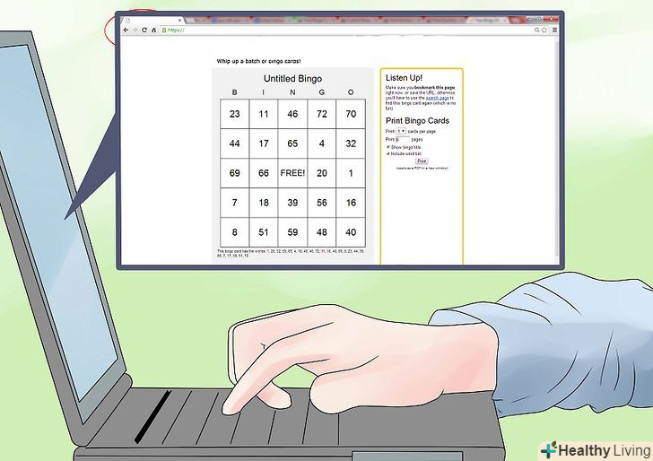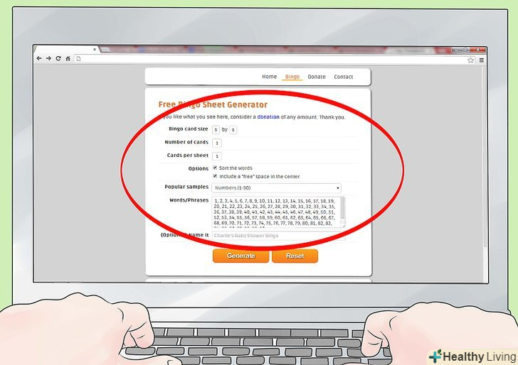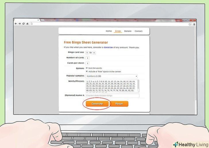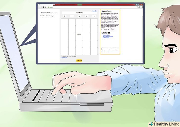 Пошукайте сайт, на якому є генератор карток для бінго.- На деяких сайтах потрібна реєстрація, щоб отримати доступ до інструменту, на інших – членський внесок. Однак існує дуже багато сайтів, якими можна користуватися безкоштовно і без вказівки особистої інформації.