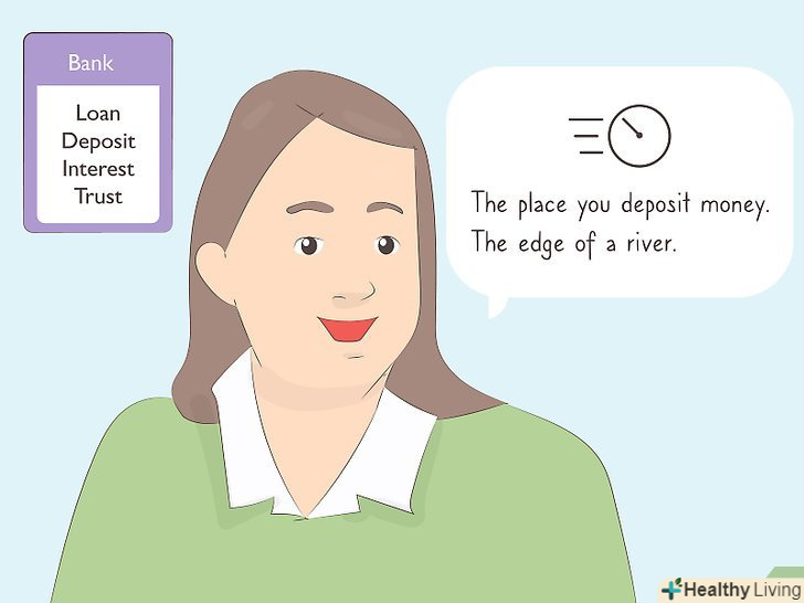 Опишіть кілька значень, які може мати слово. багато ліпші вам слова можуть мати більше одного значення, і немає ніякої різниці, який саме сенс ви будете доносити до інших. Тому використання різних значень слова допоможе гравцям встановити зв'язок між ними. [4]- Якщо вам попалося таке слово, як «ручка», можна описати його як предмет, яким ви пишете або за допомогою якого відкриваєте двері.