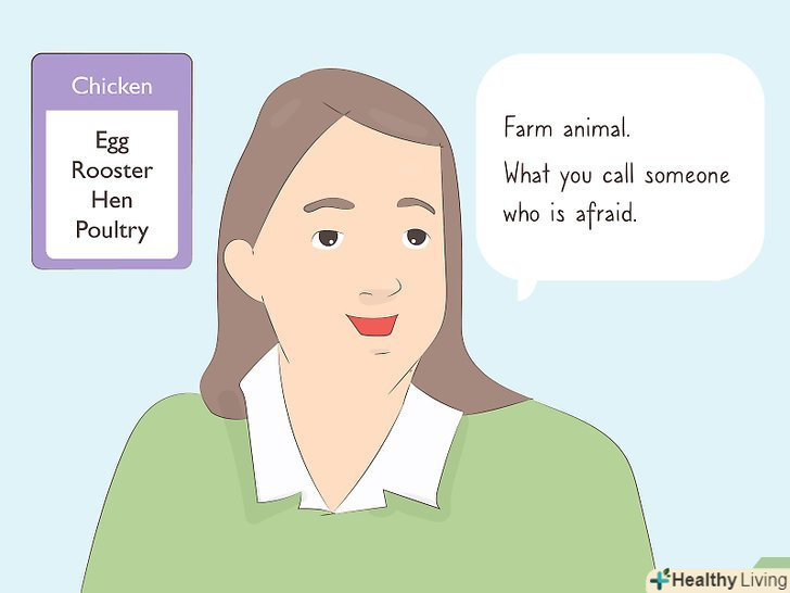 Давайте своїм товаришам по команді підказки про слово, яке потрібно вгадати. якщо це слово «книга», можна підказати приблизно так: «щось, що ви використовуєте для навчання в школі»,-і: «великий збірник слів з головним сюжетом». Ви набираєте очки, коли ваші товариші по команді вгадують слово. Не можна використовувати будь-яку частину цього слова або будь-яке з перерахованих заборонених слів. [2]- Якщо ви витягнете незнайоме слово або якщо вашим товаришам по команді складно його відгадати, можна пропустити цю карту. Однак, якщо ви пропускаєте карту, то очко йде іншій команді.