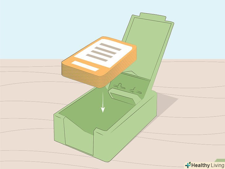 Помістіть карти в спеціальний лоток. перед початком кожного ходу вам потрібно буде заповнювати лоток картами, щоб гравець, що дає підказки, міг швидше їх переглядати. Так вам не потрібно буде витягати карти з стопки, якщо тільки ви не підходите до кінця. [1]- Це скоріше пропозиція, ніж правило, тому що так гра протікає більш плавно, але це необов'язково. Якщо ви хочете витягнути кожну карту з колоди, це теж допустимо.