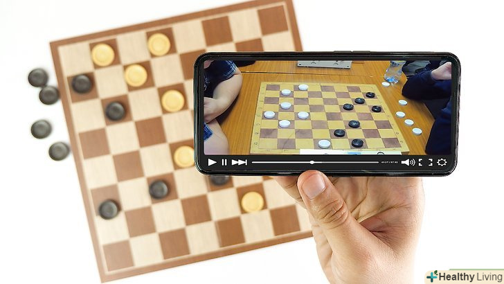 Спостерігайте за грою майстрів. Дивіться ігри наживо, в інтернеті або по телевізору: ви дізнаєтеся багато нового про тактику і стратегії гри в шашки, просто поспостерігавши за грою майстрів. Звертайте увагу на те, як майстри грають в тих чи інших типових положеннях. [13]- Почитайте літературу, присвячену тактиці і стратегії гри в шашки. Багато майстрів описали свої прийоми і стратегію гри, і їх рекомендації допоможуть вам підвищити свою майстерність.