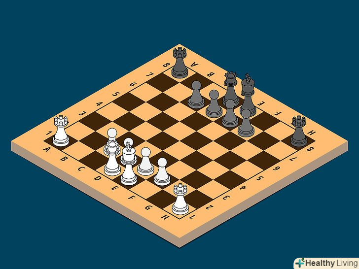 Пограйте в шахи всіма фігурами. коли дитина засвоїть, як ходить кожна фігура, пограйте з ним в звичайну шахову гру. Мета гри полягає в тому, щоб поставити мат королю противника. Нагадайте дитині про те, що при досягненні останньої горизонталі пішак перетворюється в ферзя. [9]- Як і раніше, якщо дитина хоче повернутися до більш простих ігор, дозвольте йому зробити це.