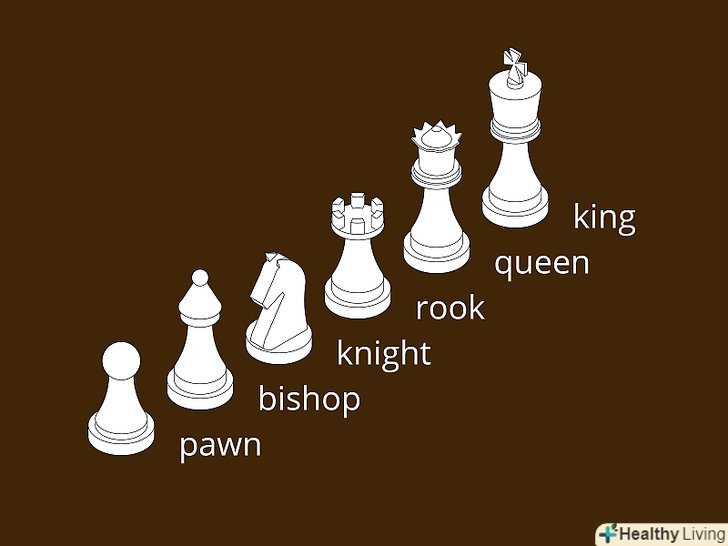Приступите до вивчення фігур. ознайомте дитину з пішаками, кіньми, слонами, турами, ферзем і королем. Відзначте відмінності в їх зовнішньому вигляді. Розставте фігури на дошці, щоб дитина побачила, як вони розташовуються в початковій позиції. [2] [3]- Кінь, як і випливає з назви, зазвичай нагадує голову і шию цієї тварини.