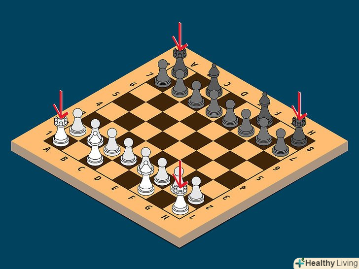 - Тури розташовуються на 1-й і 8-й клітинах вертикалей A і H.