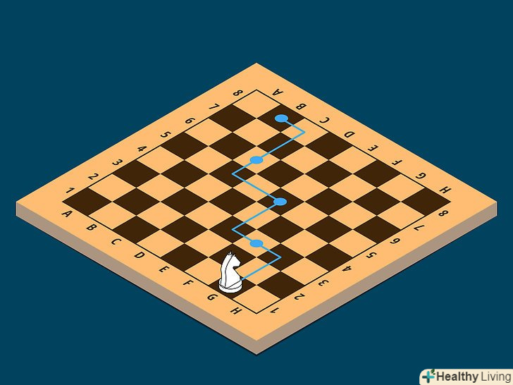Поставте на дошку коней. нехай дитина походить кіньми по порожній дошці. Хід буквою " Г " досить незвичайний, і для його засвоєння може знадобитися деякий час. Виберіть на дошці клітку, до якої дитині необхідно дістатися конем. Тим самим ви навчите дитину думати на кілька ходів вперед.- Коли дитина освоїться з кіньми, додайте пішаки і пограйте в ту ж гру, що і раніше з іншими фігурами.