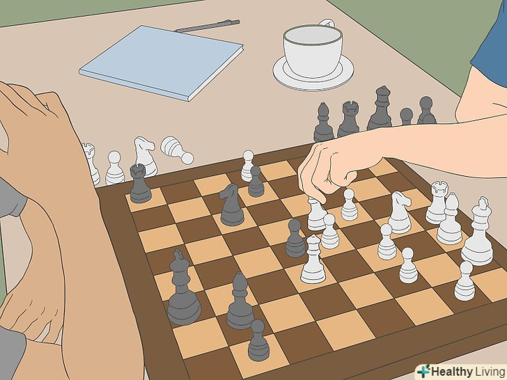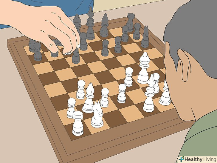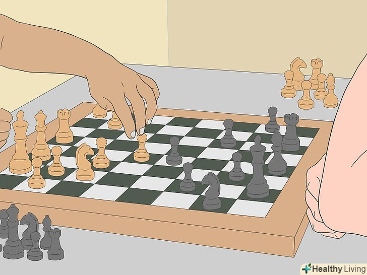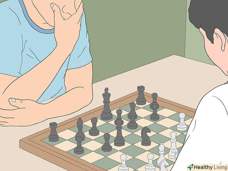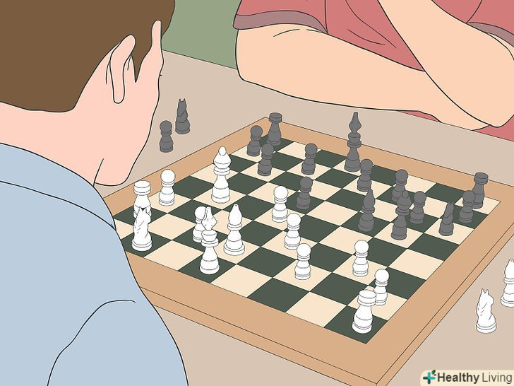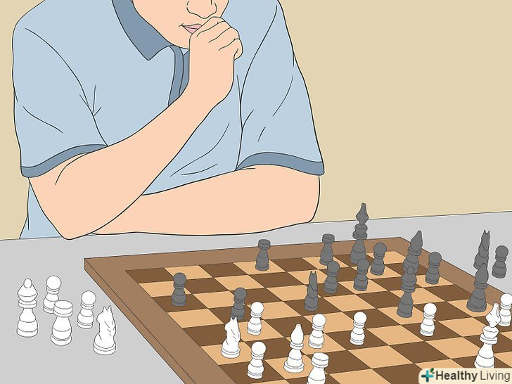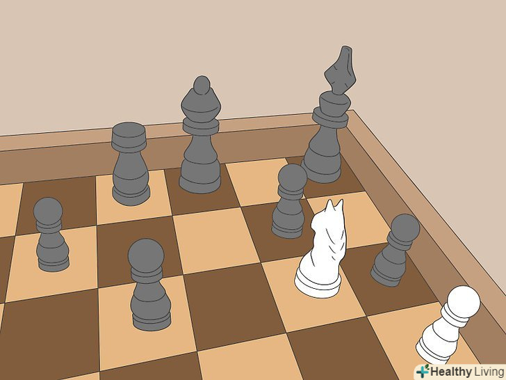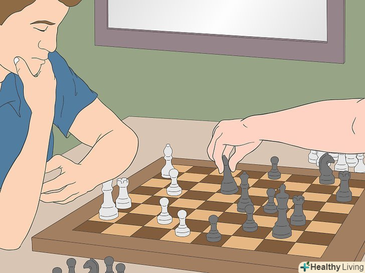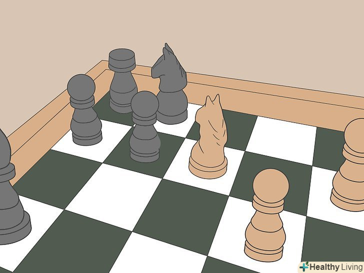 6. Попрактикуйтесь на дозвіллі у вирішенні шахових завдань. ви можете значно підвищити свої навички, не зігравши при цьому жодної партії. Шахові завдання являють собою ситуації, коли від вас вимагається поставити мат в 1 або 2 ходу. Попрактикуйтеся на сотнях таких завдань з книг або в Інтернеті і з часом ви освоїте чудові розстановки фігур і несподівано підлі типи атаки. Незважаючи на те, що ви навряд чи коли-небудь побачите подібну розстановку сил на дошці, шахові завдання розвивають вашу здатність бачити всі потенційні кути атаки і як ефективно розміщувати фігури. [19]