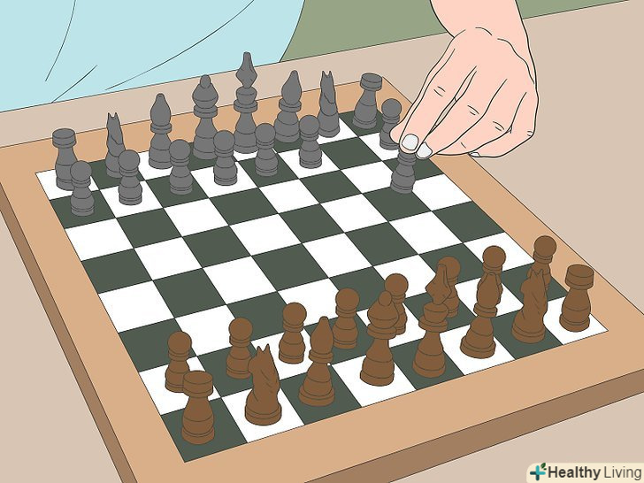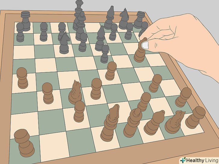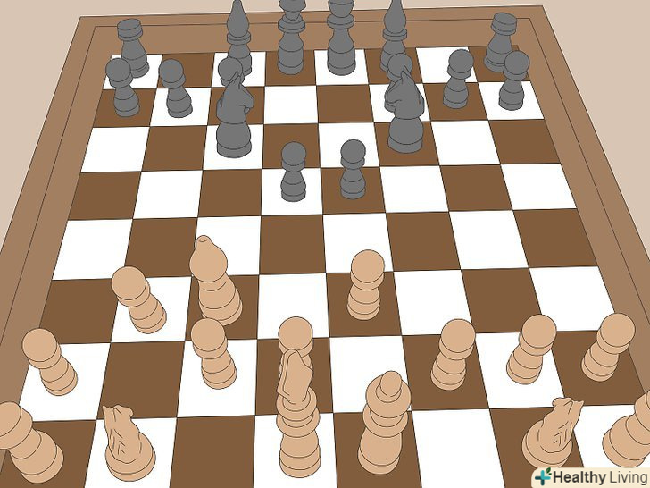 • Проверніть ризикованийКоролівський гамбіт. після Боббі Фішера кожен гросмейстер знайомий з цим дебютом, здатним вивести з рівноваги будь-якого новачка. Просто перемістіть пішаки з E2 і F2 вперед на два поля в перші два ходи. При цьому чорні часто переходять в атаку, реагуючи на ваше відкриття, але незабаром ваша стіна пішаків доставить їм чимало проблем. [4]