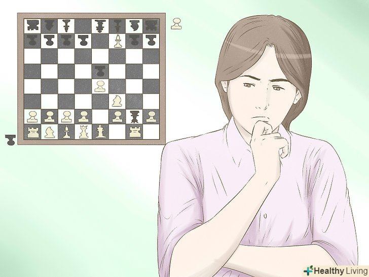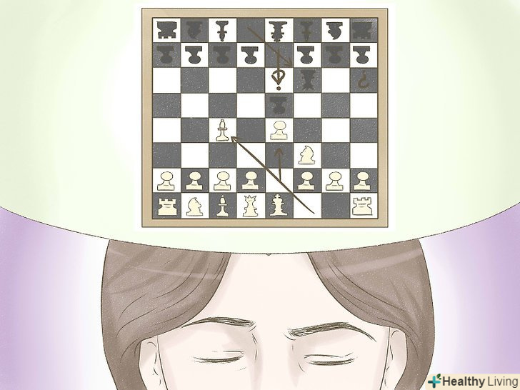 Запустіть уявну візуалізацію. Ви знайшли хід Сxf7? Це шуканий хід. Так що тепер приступайте до частини візуалізації. Не торкайтеся до фігур-розмірковуйте в розумі про себе.- Уявіть, як буде виглядати позиція після того, як ви зіграєте Сxf7. Вважайте, що фігура стоїть там.