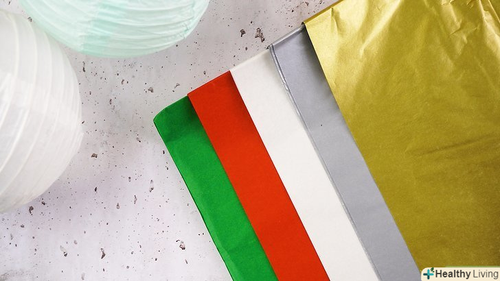 Виберіть колір. для цієї задумки потрібно зовсім небагато паперу. Тонкий папір покриє весь куля паперового ліхтаря в результаті. Для цього вам знадобиться досить тонкий папір.- Можна використовувати однотонний папір або зробити ваш ліхтар різнобарвним. Виберіть будь-яку бажану колірну комбінацію або відповідну забарвлення для випадку, до якого ви готуєте ліхтар.