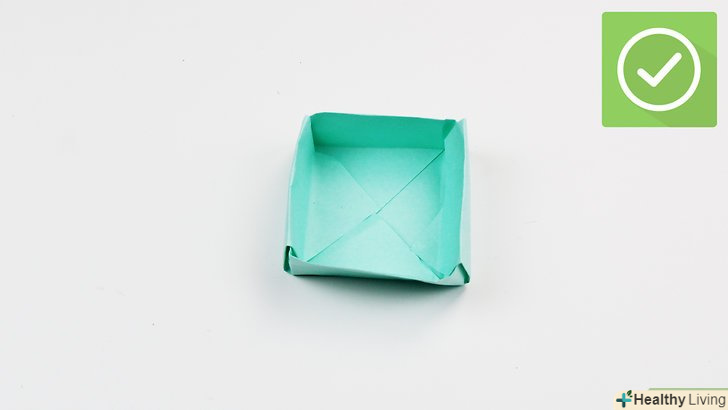 - Загніть кожен кут в центр, де перетинаються всі згини і притисніть пальцями. переверніть папір так, щоб перед вами був квадрат, але не розкривайте на цей раз. [2]