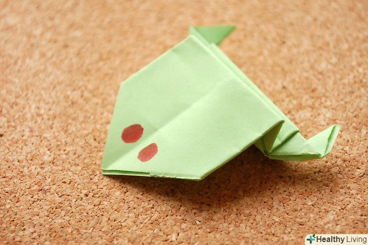 Жаба з паперу-це простий і веселий проект орігамі. Можна зробити велику або маленьку жабу, і якщо ви злегка натиснете на її спину, вона зробить стрибок! Читайте далі, щоб дізнатися, як скласти жабу з паперу.