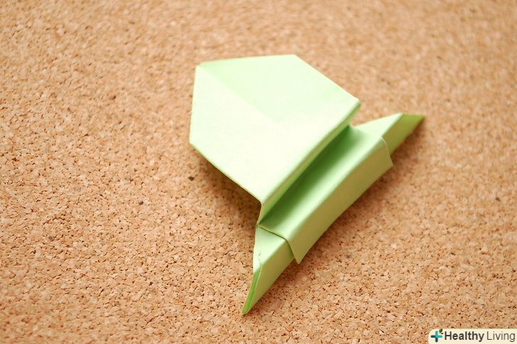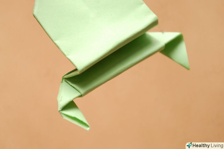 Підігніть нижній край ще раз, тільки з внутрішньої сторони, як ніби це гармошка. завдяки цьому жаба зможе стрибнути.