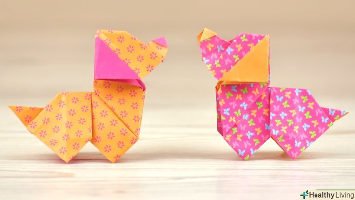 Візьміть аркуш паперу для орігамі або складіть квадрат самостійно. Папір для орігамі вже має квадратну форму, але якщо ви використовуєте звичайний папір, з неї слід отримати квадратний лист. Для цього візьміть звичайний аркуш паперу і загніть його верхній кут до протилежної сторони, так щоб верхній край поєднався з бічною кромкою. В результаті у вас вийде трикутник. Після цього відріжте нижній край і розгорніть трикутник. Так зі звичайного аркуша паперу у вас повинен вийти квадрат.- Необхідно зігнути лист по діагоналі, щоб вийшов трикутник. Чи не згинайте лист паралельно бічних сторонах, інакше у вас вийде прямокутник.