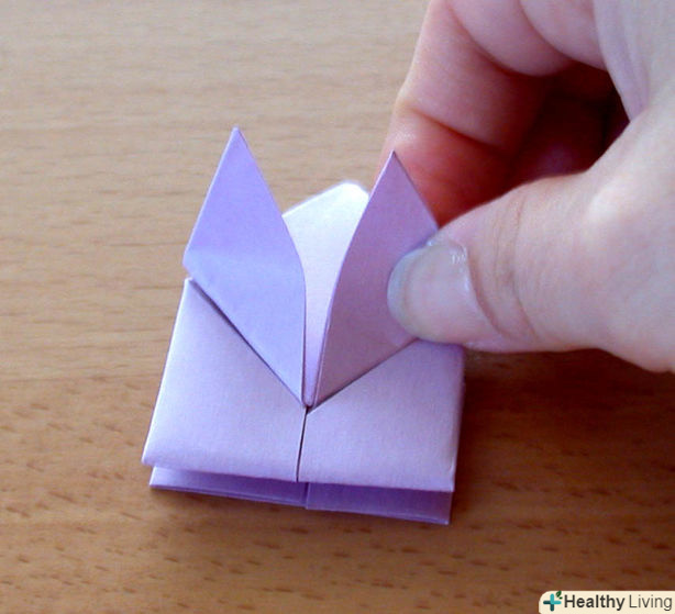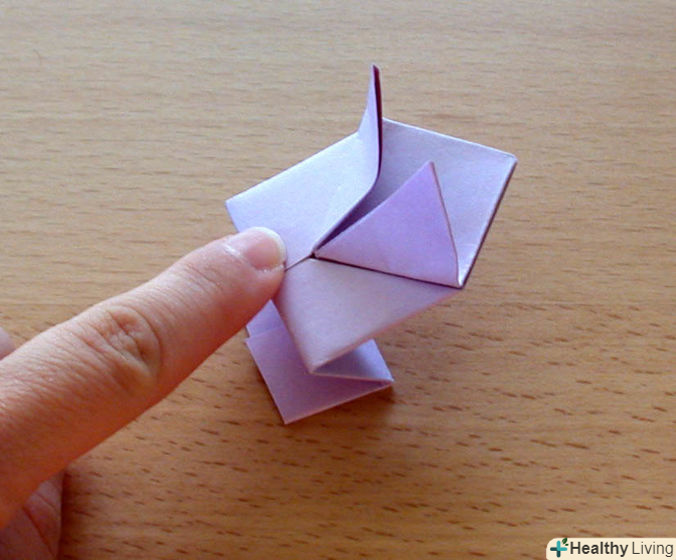Зсередини натисніть пальцями на бічні трикутники так, щоб вони зігнулися до центру. завдяки цьому ваш кролик зможе стрибати.
