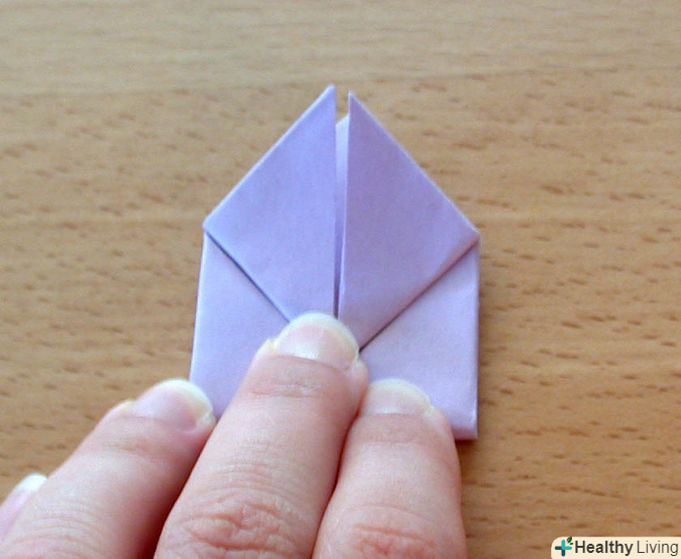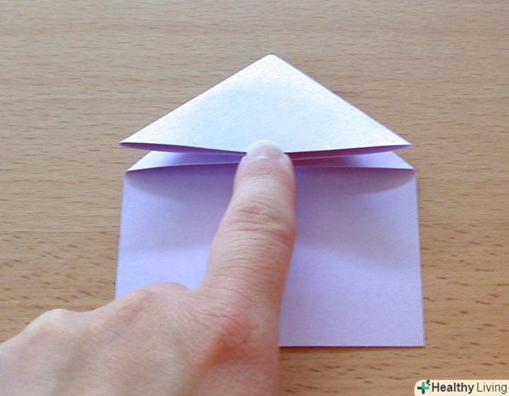 Опустіть верхню частину так, щоб трикутники зігнулися. зовні фігурка повинна нагадувати будиночок. З одного боку вона повинна бути прямокутної, з іншого – трикутної.
