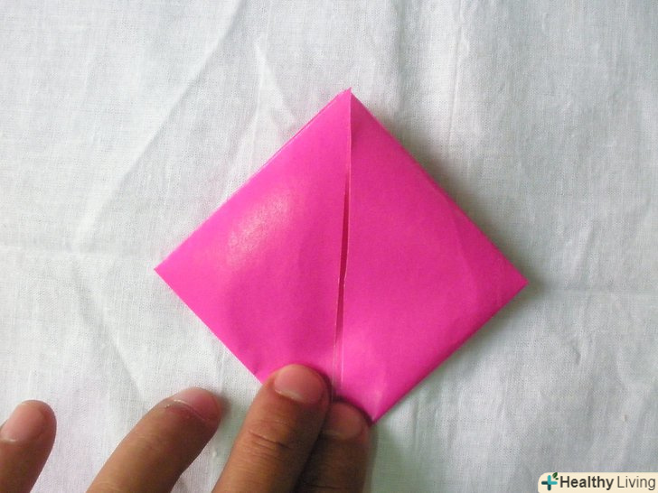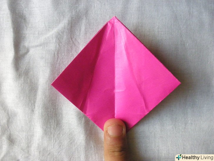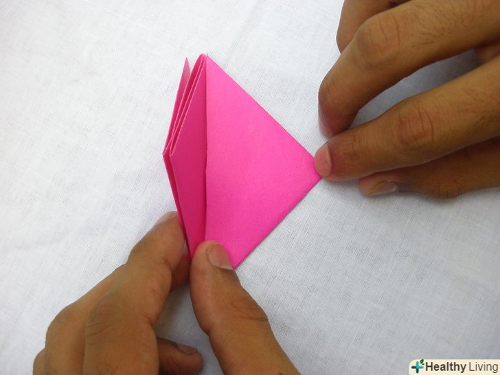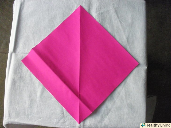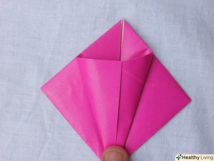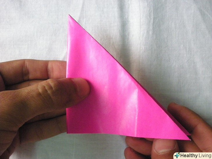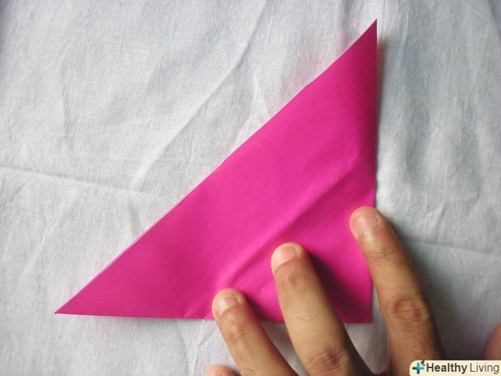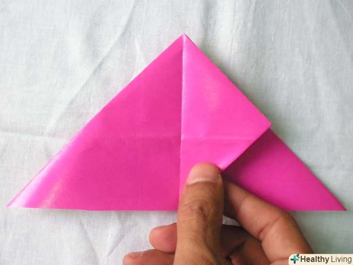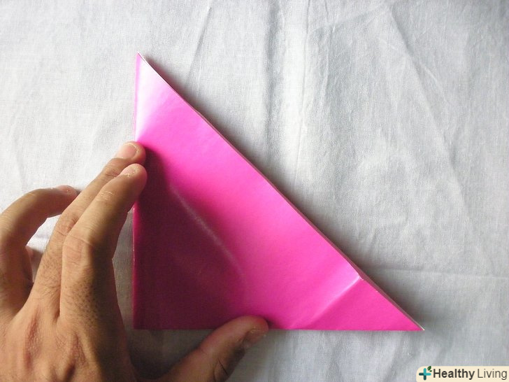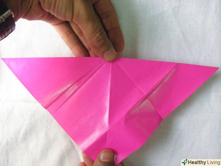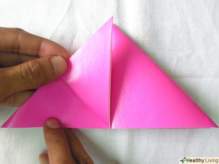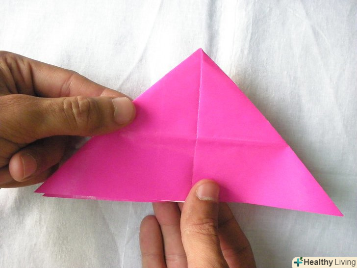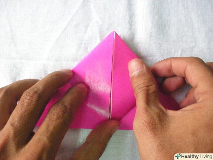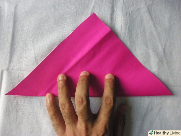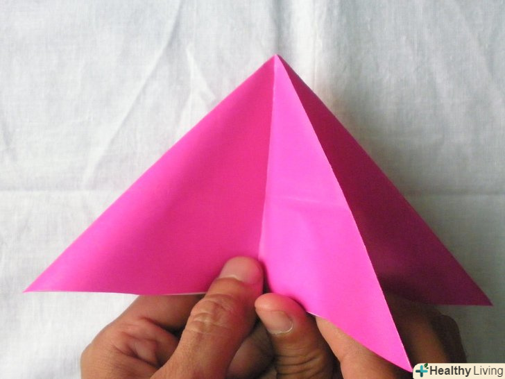 Загніть нижній лівий кут трикутника вгору до середини листа так, так щоб він збігся з верхнім кутом. зробіть складку. Повторіть те ж саме з правим нижнім кутом. Зробіть складку. Розправте обидва кути.