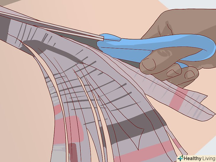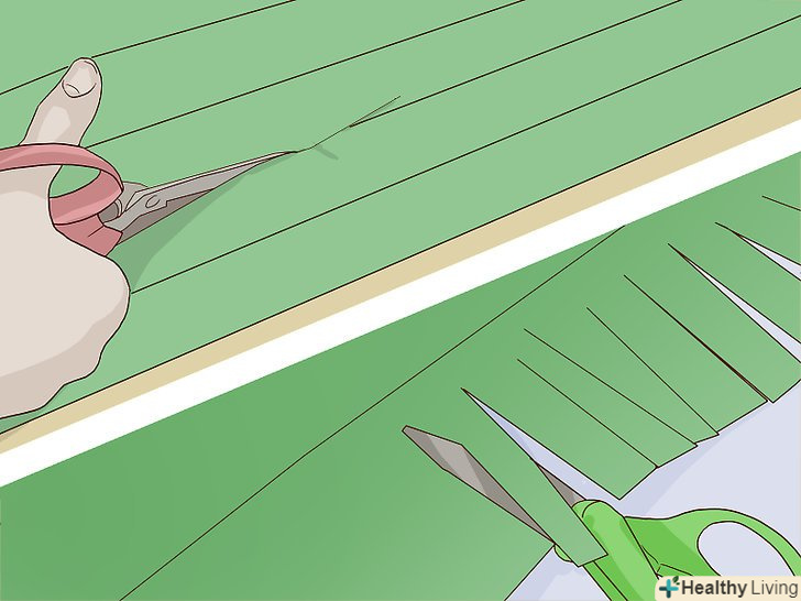 Виріжте смужки для гілок. виріжте довгі смужки шириною приблизно 5-8 см з зеленого картону. Зробіть розрізи недалеко один від одного уздовж нижньої кромки, залишивши приблизно 1.5 см на вершині для того, щоб зробити бахрому на гілках.