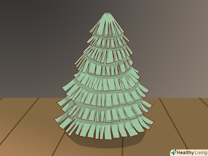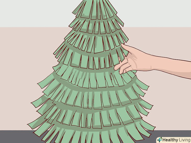 Додайте гілки. починаючи знизу і просуваючись рядами догори, приклейте смужки, облямованою стороною вниз, навколо дерева.