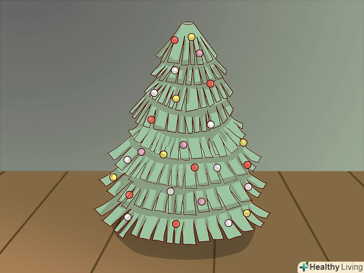 Зробіть стовбур. зробіть стовбур з зеленого картону; спорудити з нього довгий вузький конус, такий високий, яким повинна бути ваша новорічна ялина. [1]