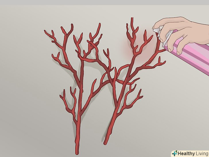 Розфарбуйте гілки. розфарбуйте гілки срібним, золотим, червоним кольором або яким вам буде завгодно. Можливо, фарбою в балончику буте легше скористатися, але в цьому випадку потрібно буде попросити допомоги у дорослого.
