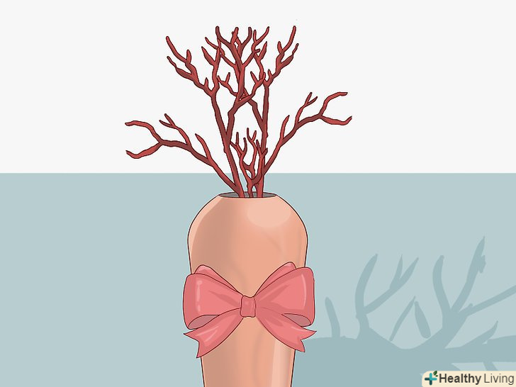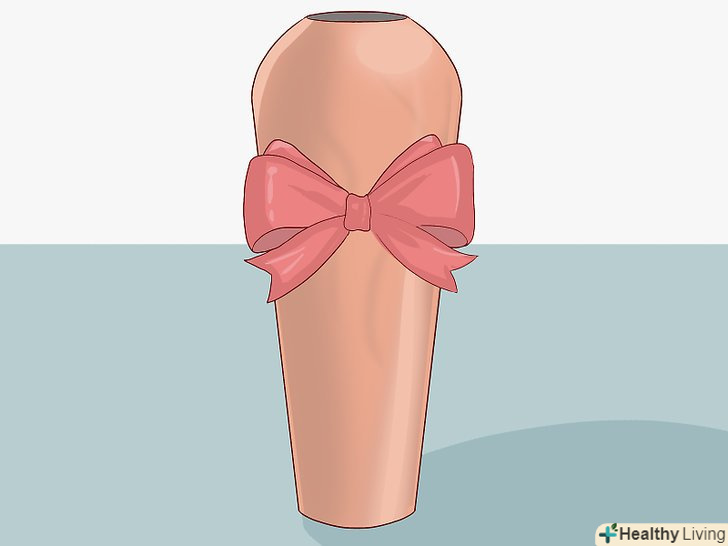 Зав'яжіть бант навколо вази. знайдіть кольоровий скручений шнур або багато подарункових зав'язок і пов'яжіть їх у горловини вази, щоб вона виглядала більш святково.