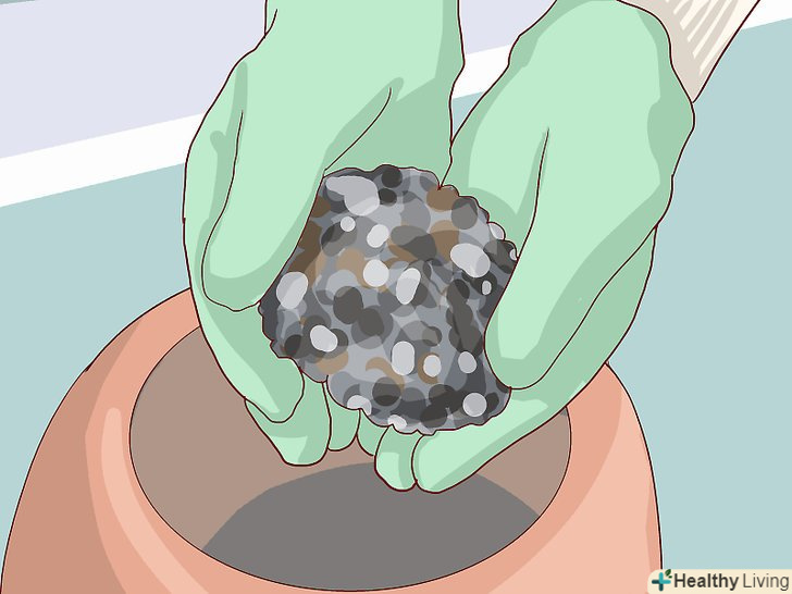 Наповніть горщик. наповніть горщик або вазу річковими каменями або гравієм. Це допоможе вазі бути стійкою і утримувати гілки.