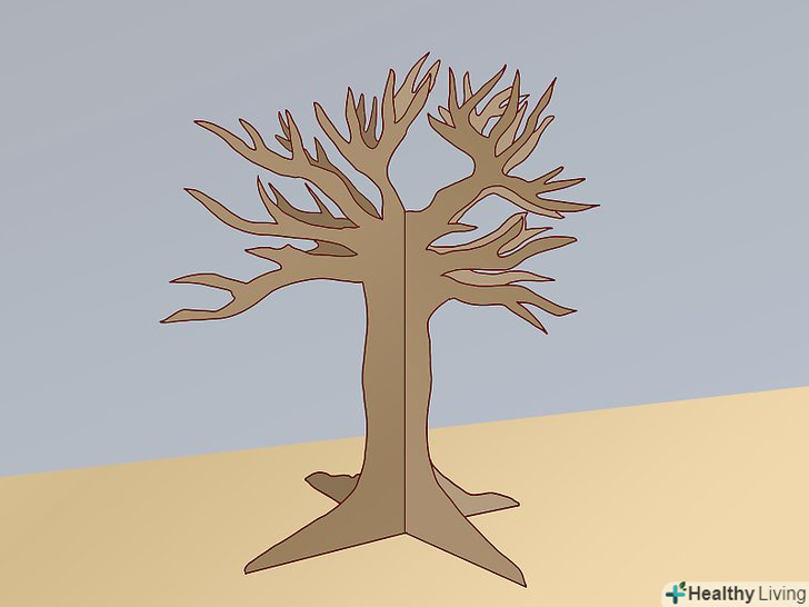 Зробіть два стовбури. на картоні намалюйте два стовбури з гілками і виріжте їх. Можливо, вам знадобиться допомога дорослого в вирізанні, так як це може бути досить важко і небезпечно.- Переконайтеся, що дерево розширюється в нижній частині стовбура, подібно зростаючим в землі коріння. Це допоможе дереву стояти.