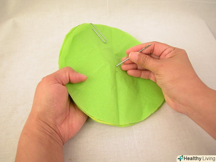 Складіть 12 паперових кіл. закріпіть їх канцелярською скріпкою і проколіть два отвори в центрі, наприклад, великою швейною голкою.