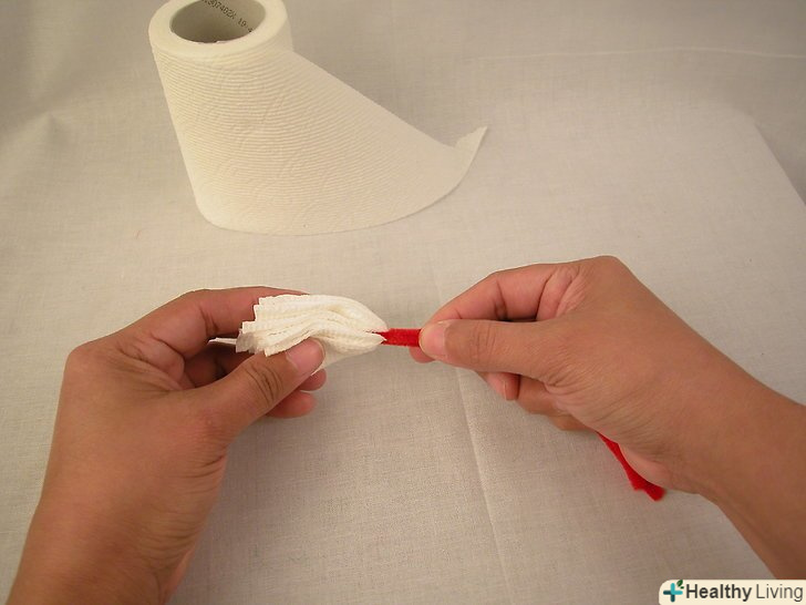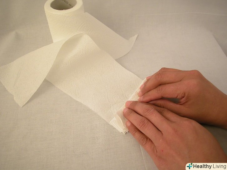 Потягніть в довжину Туалетний папір так, щоб вийшло 15-25 квадратиків, відірвіть від рулону, але не від'єднуйте квадрати.