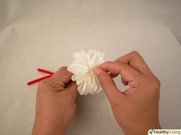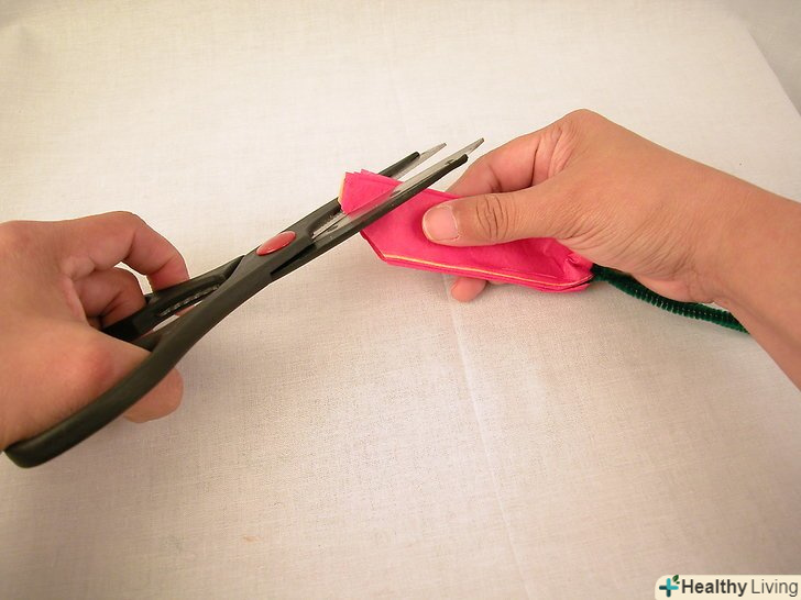 Протягніть трубоочисник через отвори. протягніть через один отвір і виведіть з іншого, утворюється петля, що фіксує папір. Трубоочиститель також послужить стеблом.