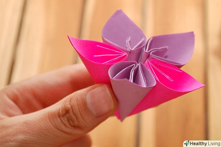 Зробіть квітку кусудама. ця квітка виходить при склеюванні 5-6 зігнутих шматочків паперу. Потрібно міцно тримати пелюстки разом до тих пір, поки клей між ними не висохне.