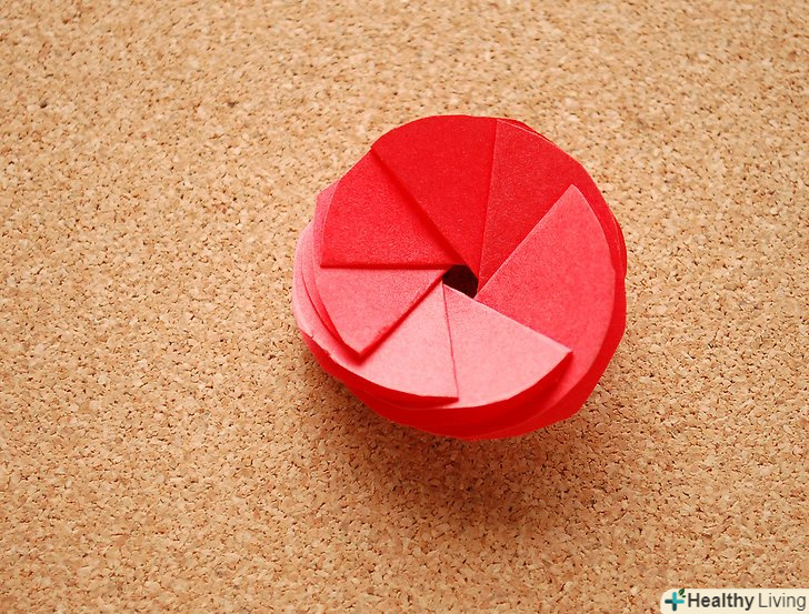 Зробіть круглий квітка з паперу. щоб зробити подібний круглий квітка, вам знадобиться кольоровий папір, клей і ножиці. Ви можете прикрасити квітку, приклеївши до нього додаткові пелюстки зовні. Виріжте кілька гуртків з паперу, складіть їх навпіл і склейте їх разом, щоб вони утворили спіраль.