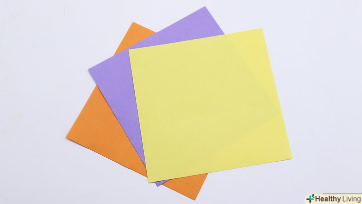 Знайдіть три аркуші різнобарвного паперу. Якщо ви хочете, щоб квітка вийшов більш цікавим, візьміть три різних кольори. Виберіть кольори, які будуть добре поєднуватися, наприклад, ліловий, рожевий і жовтий. Якщо ви візьмете кольору, які близькі за колірною гамою (такі як фіолетовий і синій), то вони зіллються. Для більш міцного квітки використовуйте щільну кольоровий папір, а якщо ви хочете зробити квітка більш легким — використовуйте папір для орігамі.