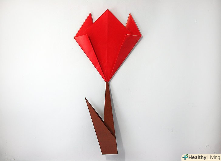 Складіть інший варіант квітки орігамі. щоб створити таку красиву квітку, складіть один шматок коричневого паперу, щоб вийшов стебло, а зі шматка червоного паперу зробіть бутон.