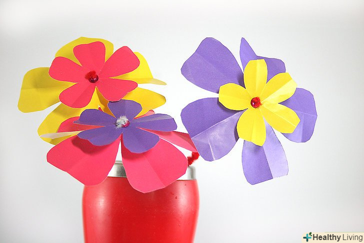 Помістіть квіти у вазу. створіть гарний букет і помістіть його в кольорову вазу. Якщо ваші квіти виглядають самотньо, додайте до них ще кілька таких же творінь.