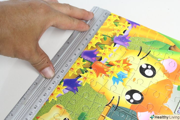 Виріжте основу для рамки. для цих цілей ви можете використовувати плакатний картон, пінокартон або твердий картон товщиною приблизно в 6 мм.виріжте прямокутник, який можна буде вставити в вашу раму. Цей матеріал послужить основою для пазла і дозволить йому лежати рівно. Для того щоб сторони основи вийшли рівними, краще використовувати сервісний ніж. Розрізи робіть уздовж інструменту т-подібної форми або транспортира, щоб переконатися, що сторони знаходяться під кутом 90º по відношенню один до одного.- Уникайте використання тонкого картону або іншого легко згинається матеріалу, так як це може привести до того, що пазл деформується з плином часу.