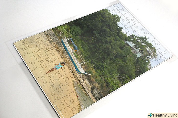 Зачекайте поки підсохне клей. зазвичай на упаковці від клею є вказівки про те, як довго він сохне. Якщо упаковка не містить такої інформації, то залиште пазли в спокої як мінімум на дві години. [3] протестуйте на скільки добре приклеїлися пазли, акуратно піднявши їх за один кінець. Якщо вони все ще легко відриваються або розвалюються, то залиште більше часу на висихання або нанесіть більше клею.