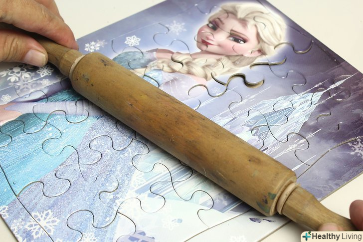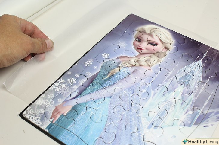 Підкладіть шар вощеного паперу під пазл. необхідно захистити поверхню під пазлом, акуратно протягнувши щось плоске і легко усунути, наприклад, вощений папір.