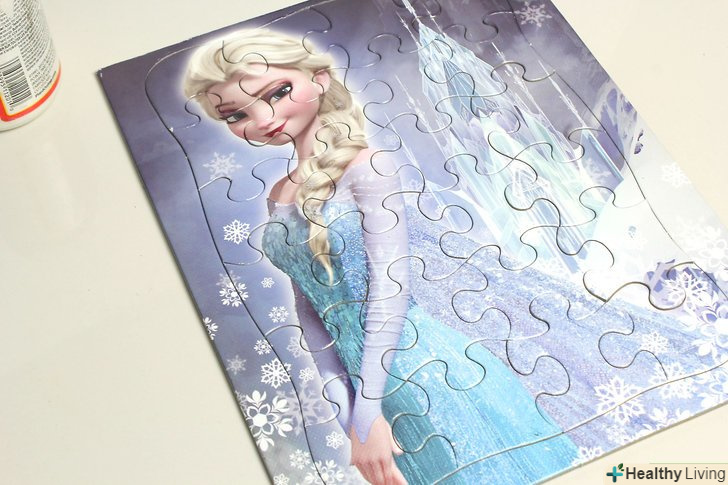 - Якщо пазли були приклеєні, але до цих пір легко відокремлюються, то нанесіть ще один шар клею. Переконайтеся, що клей також нанесений на щілини між пазлами.