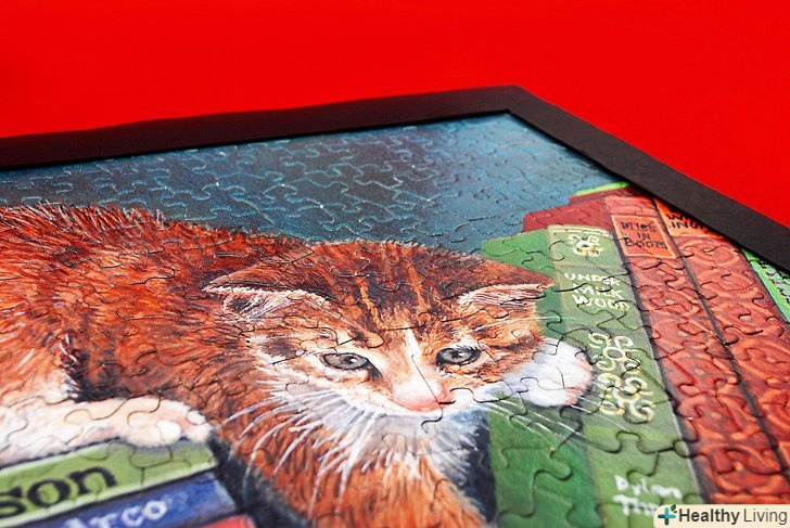 Основа під пазл повинна бути як мінімум того ж розміру що і сам пазл.- Помістіть пазл на основу і приміряйте рамки.