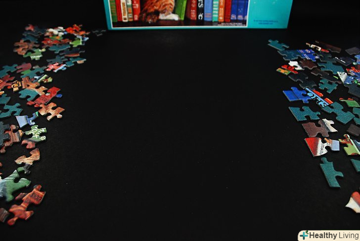 Визначтеся зі своїм робочим місцем: для складання пазла підійдуть стіл, плоска дошка або вільне місце на підлозі. Переконайтеся в тому, що вибране вами простір досить велике для того щоб на ньому можна було розкласти всі елементи.