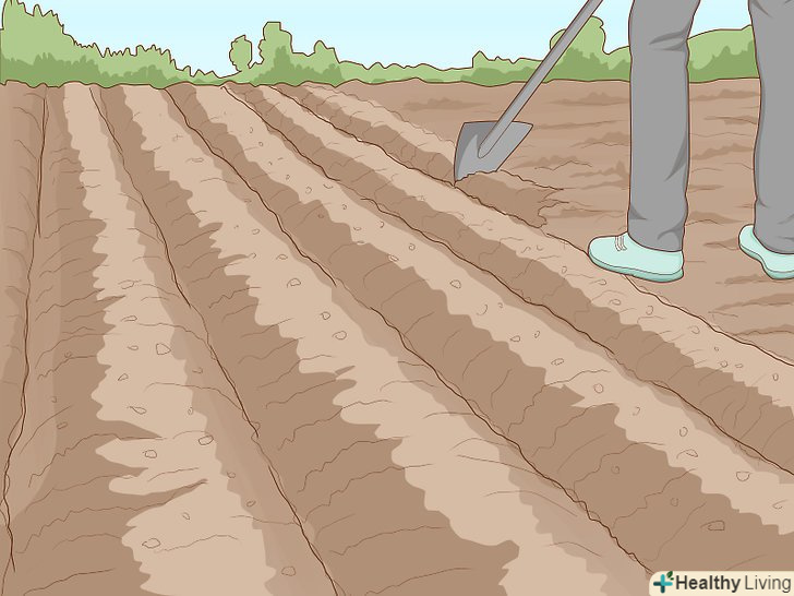 Скопайте грядки. з сучасним сільськогосподарським обладнанням цей процес залежить від виду висаджується культури. Тут ми розглядаємо загальні методи, які використовував би людина, яка не має подібного обладнання і досвіду. Для підготовки грядок вам потрібно спершу розмітити територію під посадку, а потім, за допомогою мотики або плуга, по ширині ділянки створіть з пухкої грунту невисокі насипу. Потім, за допомогою обраного Вами інструменту, на грядці створіть неглибокі ямки.