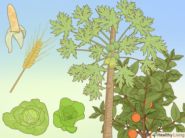 Познайомитися з різними видами культур. при слові овочі Ви напевно уявили собі овочевий відділ супермаркету. В якійсь мірі ви маєте рацію, але якщо ви зважилися виробляти свою їжу самостійно вам потрібно буде передбачити весь свій раціон і тут одним вже супермаркетом не обмежитися. Ось приблизний список культур, які ви, швидше за все, вирішите вирощувати.- Овочі. Сюди входять бобові, зелень, коренеплоди, зернові і гарбузові (кабачки, огірки, дині і гарбуз). Ця їжа стане прекрасним джерелом багатьох поживних речовин і вітамінів, таких як: