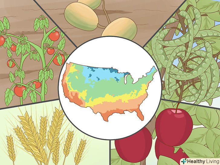 Вибирайте культури і сорти, відповідні клімату вашого регіону. у цій статті неможливо надати детальну і точну інформацію по кожному конкретному регіону. Тому ми розглянемо лише основні вимоги до вирощування різних рослин відповідно до регіонів їх вирощування, рекомендованих Міністерством сільського господарства США [1] , яка дозволить вам приблизно порівняти і оцінити здатність до проростання тих чи інших культур у Вашому регіоні.- Квасоля, горох та інші бобові. Ці культури висаджуються після відступу морозів і ризику заморозків. Їм потрібно від 75 до 90 днів для того щоб дати перший урожай і можуть,при правильному догляді, продовжувати плодоносити до настання осінніх холодів.