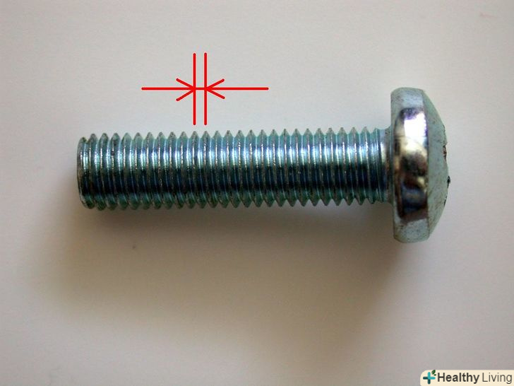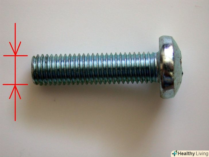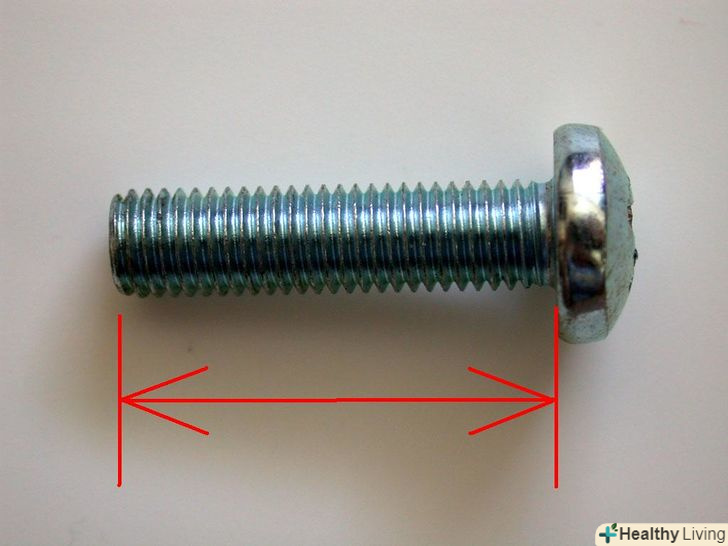 Прочитайте довжину гвинта після x . Довжина гвинта вимірюється від кінця гвинта до початку головки, як показано на ілюстрації. Врахуйте, що довжина гвинтів з потайною головкою вимірюється разом з нею.- Довжина американських гвинтів вимірюється в дюймах. Так, Довжина гвинта 1/4-20 x 3/4 становить три чверті дюйма, або сім з половиною ліній. Довжину висловлюють або простими дробами, або десятковими.
